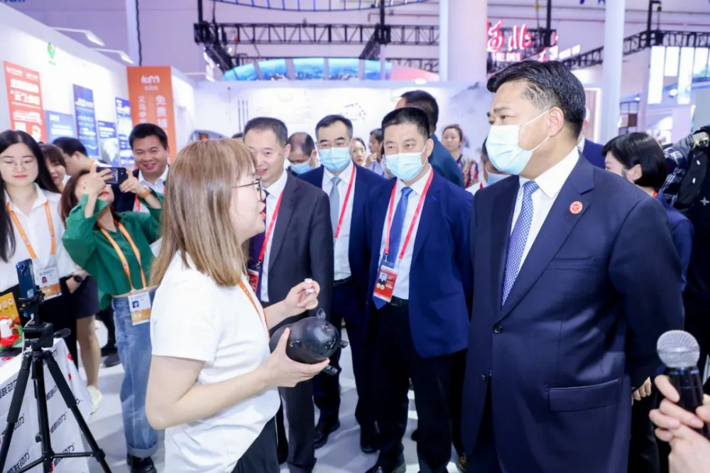開幕式當天下午,商務部副部長盛秋平在浙江省商務廳副廳長陳志成等領導的陪同下,蒞臨浙江館參觀。